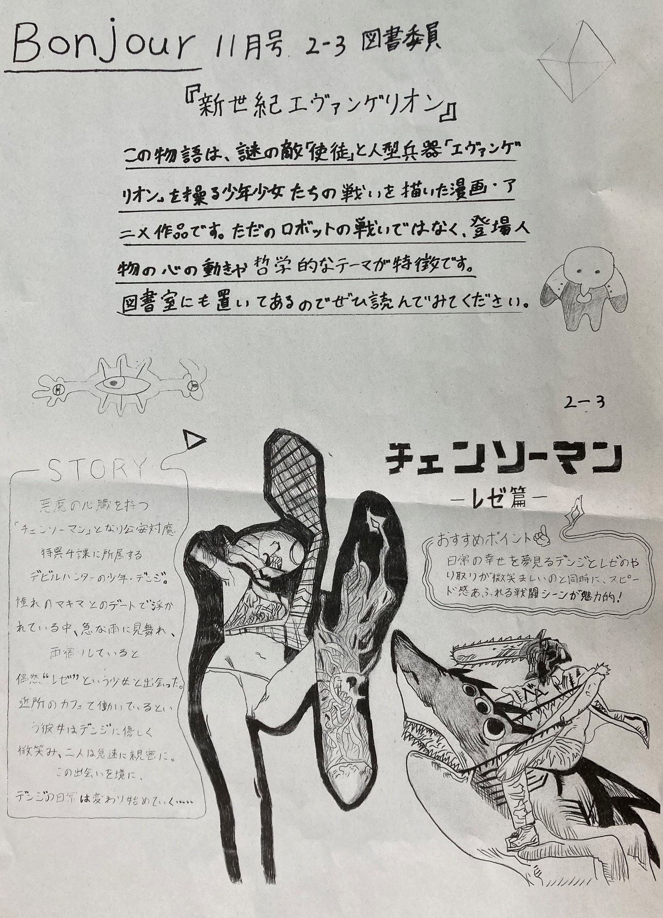 Bonjour 図書委員より「図書室だより」2025 11月号 こちらから(PDFファイル)
