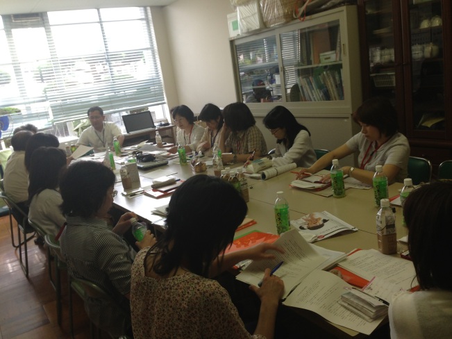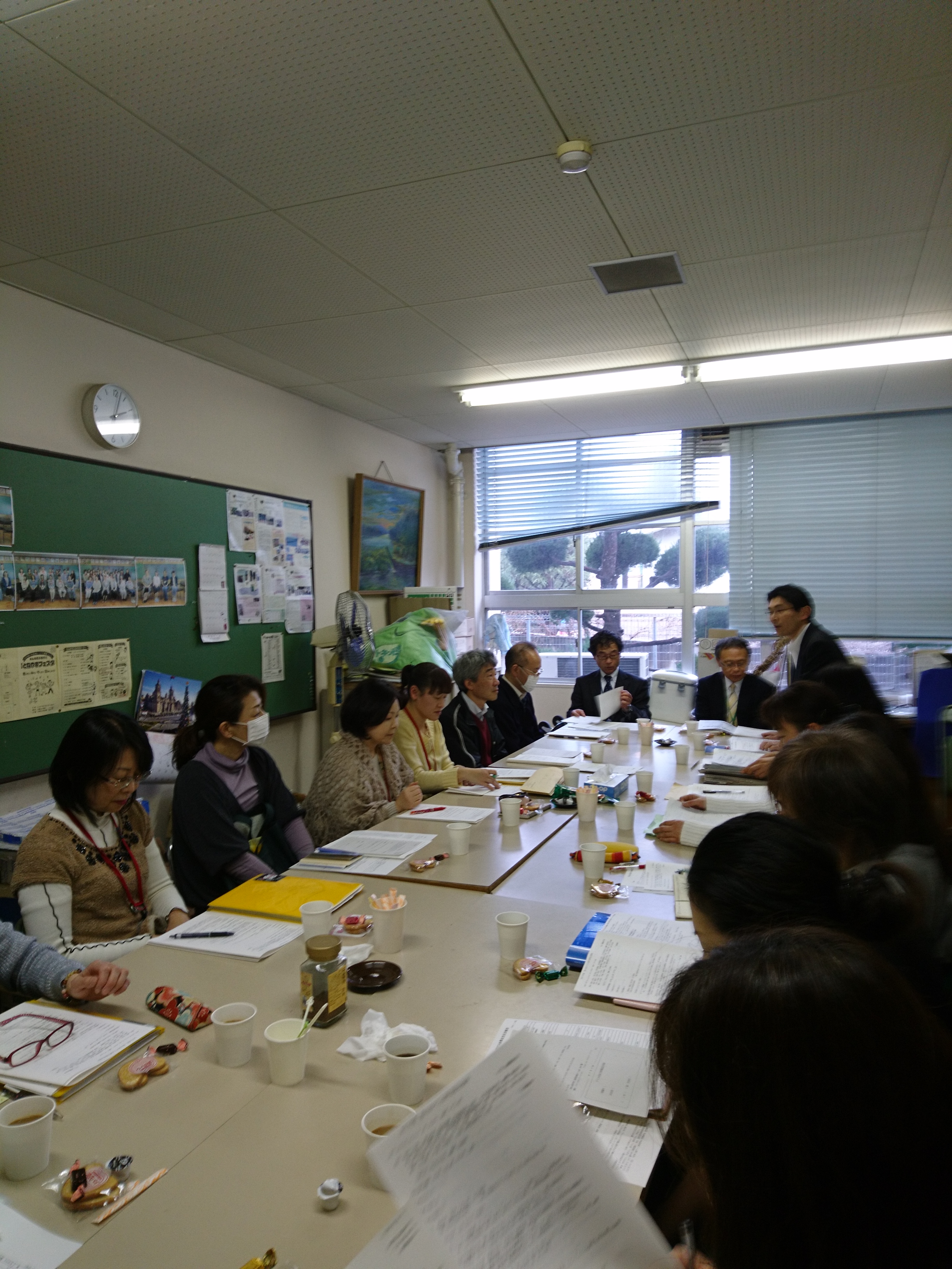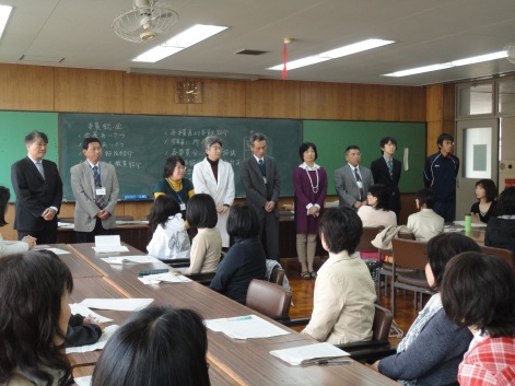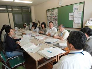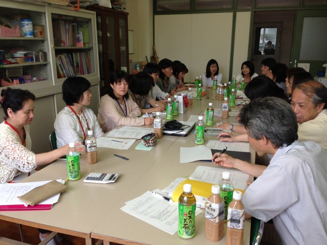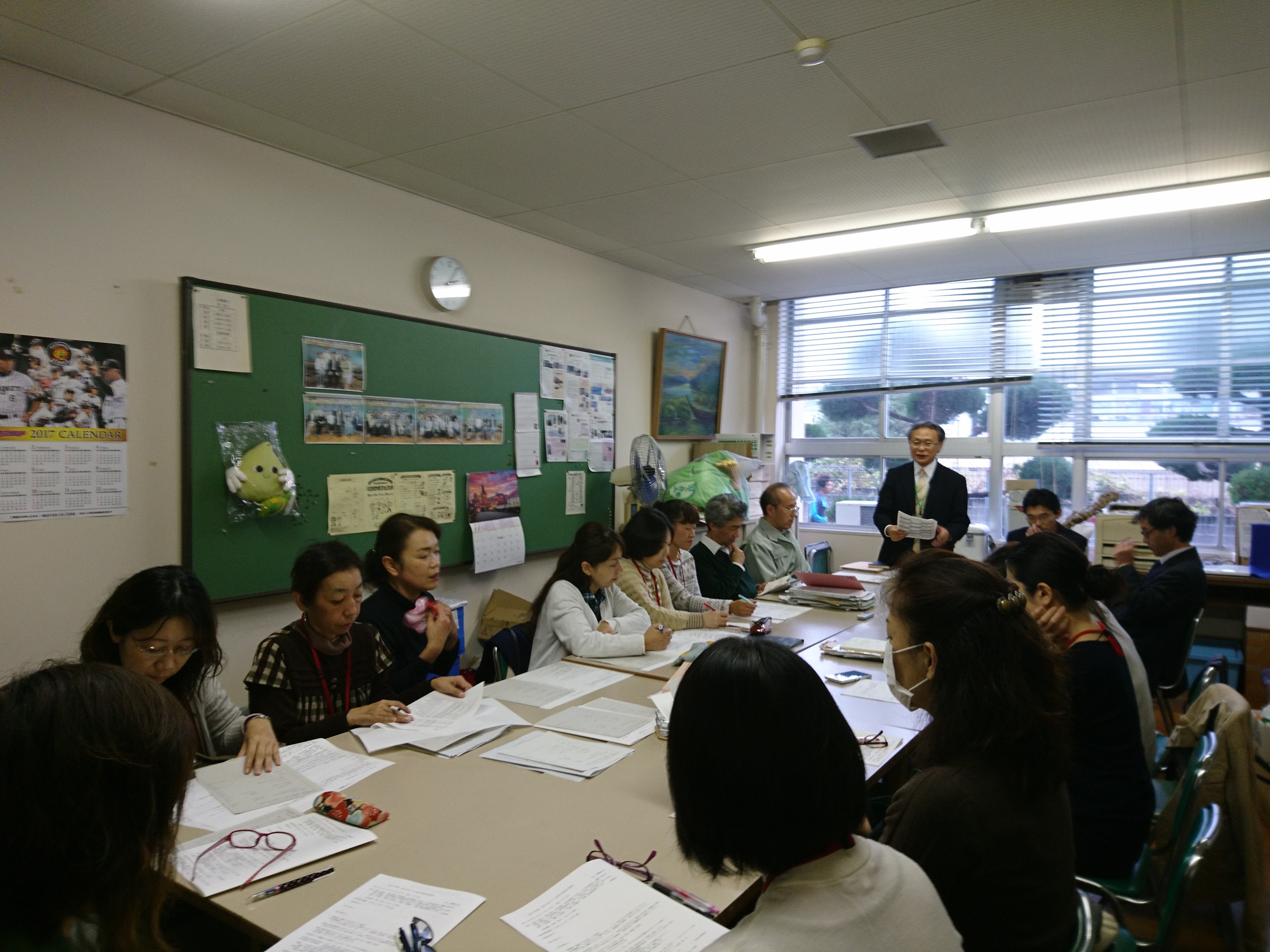 メンバーは橋本校長先生、筒井教頭先生、板谷事務長、PTA担当の濱田先生、松本先生、