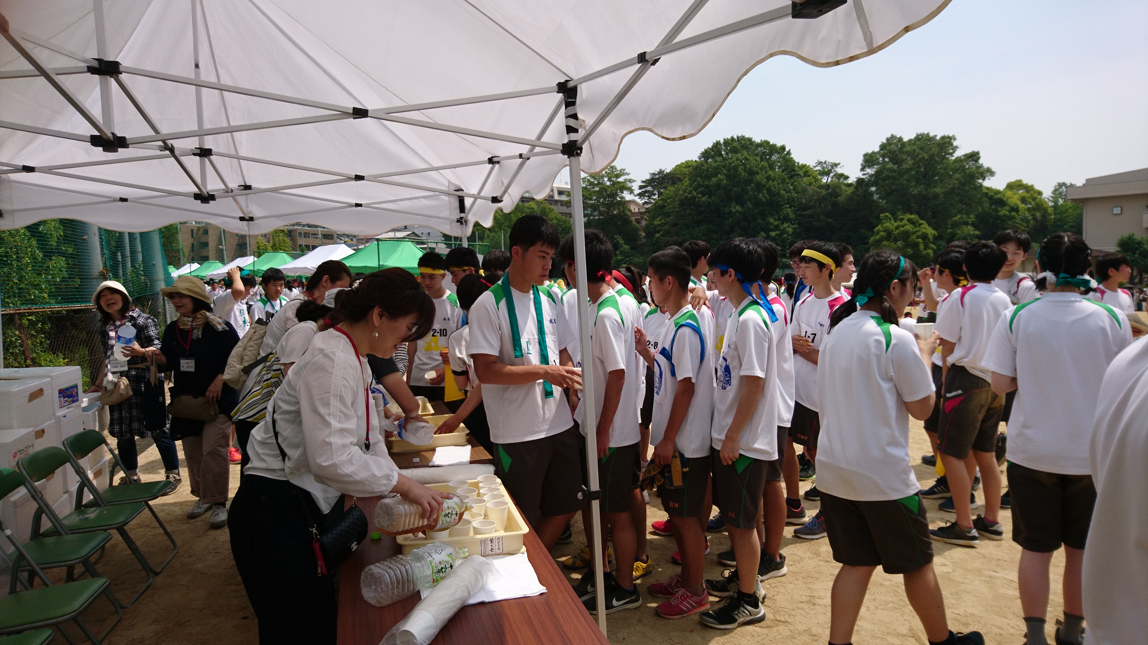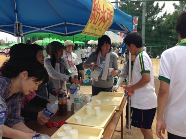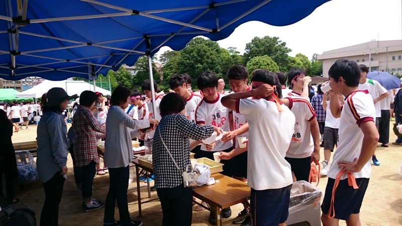 5月31日(水)爽やかなお天気の中 体育大会が開催され、例年より10分早めの10時20分よりPTAから生徒たちへ給水活動が始まりました。