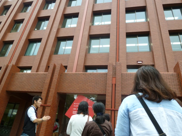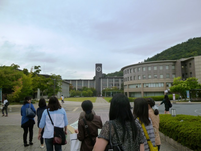 最初は関西学院大学上ヶ原キャンパスに行きました。案内役の学生から学校の説明、授業の説明、大学生活について聞き、その後広いキャンパス内も案内していただきました。