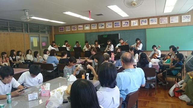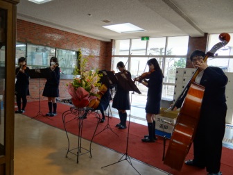 茶道部員のお点前や 弦楽部の演奏も楽しんでいただきました。