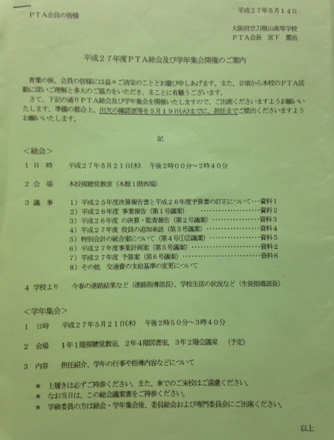 PTA総会・総会準備委員会・委員総会 |