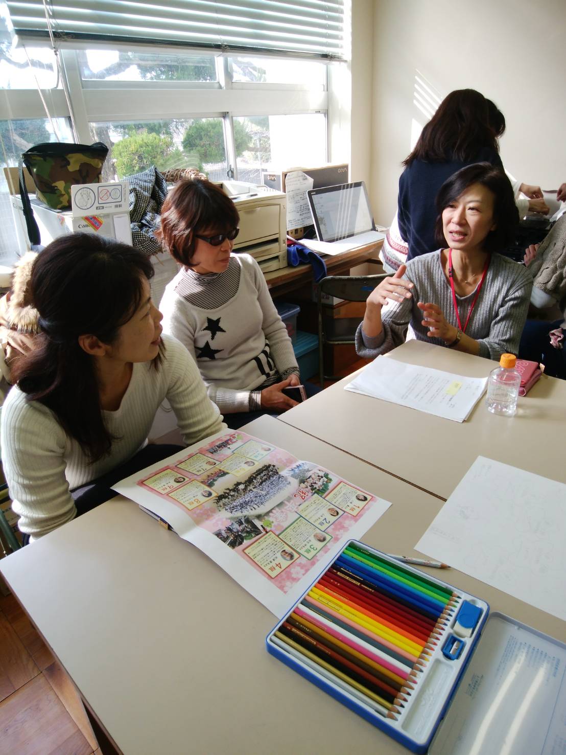 10/14(土)午後より第93号広報紙の編集会議を行いました。23名もの委員さんが集まり、各自持ち寄った沢山の写真からベストショットを選びながら紙面の校正を行いました。今年度二回目の会議なので皆さん慣れたもので和気あいあいとお喋りしながらも、予定時間内にきちんと修了することができました。