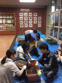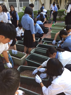 あいにくの雨でしたが、14名の参加があり、昨年度のプランターを整理し、下地の準備をしました。