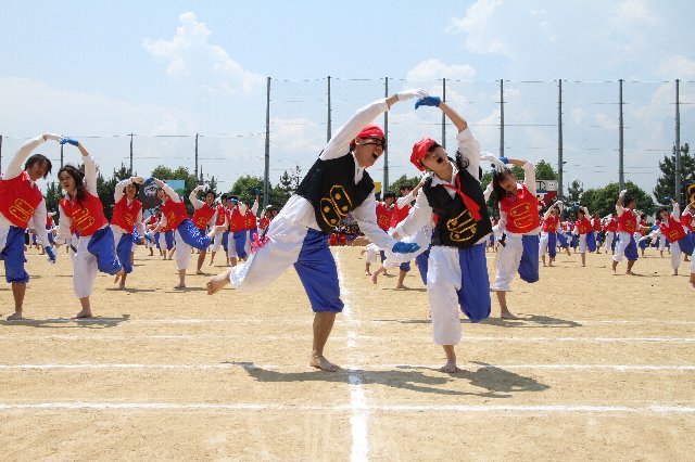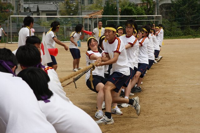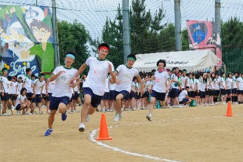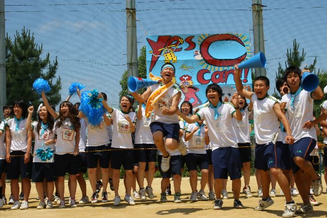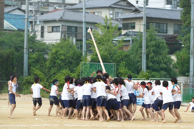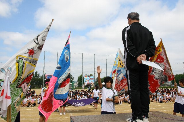 競技はもちろんのこと、クラスで協力して制作した大型パネルおよび団旗、応援団席での常時応援、そして、それぞれ工夫し練習を積んできた応援合戦を披露します。