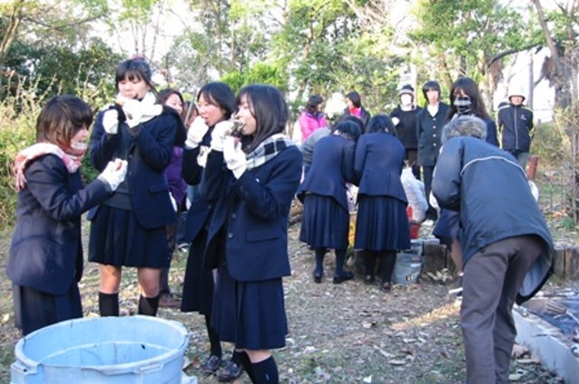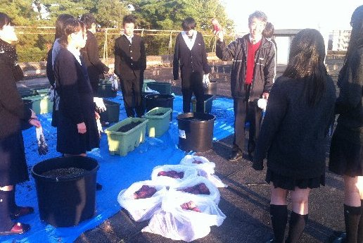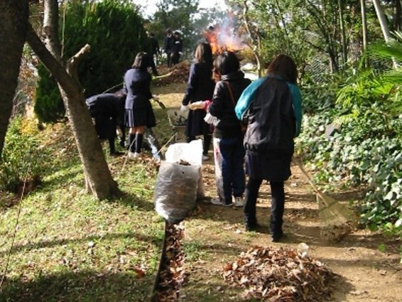 環境委員会や生物エコ部の活動として、裏山の清掃や希少植物の保護・増殖活動を続けています。