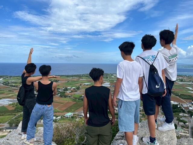 本日午後は、それぞれの民家ごとに多彩な活動が行われました。 釣りを楽しんだり、伊江島のシンボルである城山(グスクやま)に登ったりと、生徒たちは自然の中で心地よい汗を流しました。城山から望む海と空の青さは格別で、その景色の美しさに感動した様子が印象的でした。また、ニャティヤ洞(がま)にも足を運び、戦時中に島の人々が防空壕として利用していた場所を見学しました。平和の尊さを感じ、今を生きることのありがたさを改めて考える貴重な時間となりました。 明日は退村式を迎えます。お世話になったお父さん、お母さんとの最後の夜、感謝の気持ちを胸に、笑顔で楽しいひとときを過ごしてください。 伊江島での経験が、皆さんの心に深く刻まれることを願っています。