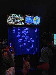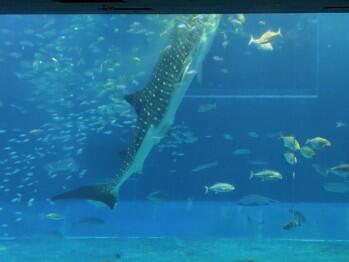 美ら海水族館では、友だちと一緒に館内を楽しそうに周っていました。