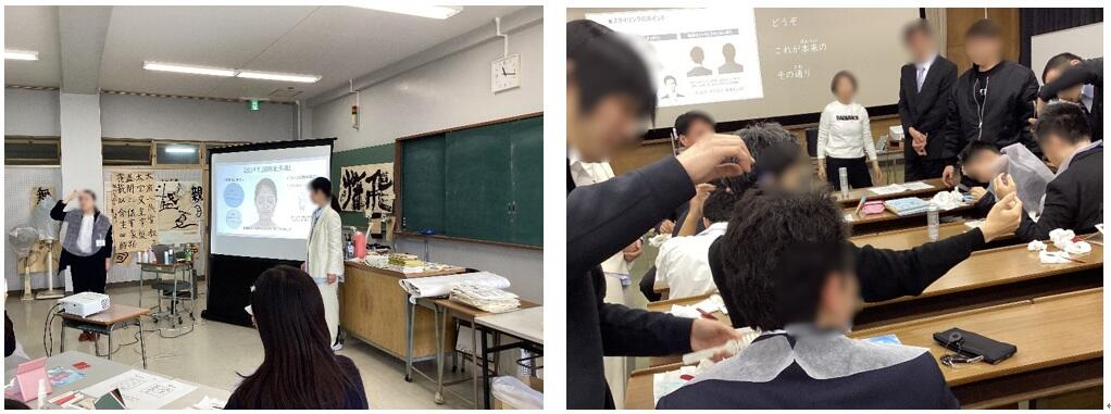 男子生徒の頭髪の整え方スキンケア、女子生徒のナチュラルメイクなどを指導していただきました。