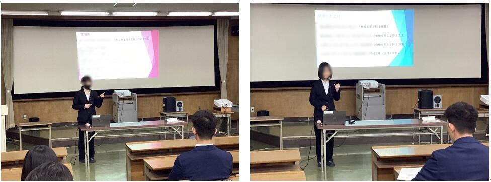 就職活動を終えた専攻科Ⅱ年生が、専攻科Ⅰ年生に向けて、自分の就職活動の経験を発表してくれました。