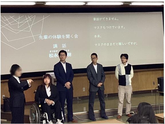 就労支援アドバイザーとして、企業で働く先輩が来校し、講義をしてくださいました。