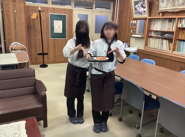 ローストチキンベジタブルとペンネアラビアータ、トナカイチョコプリンを制作しました。実習後に料理を持ってきてくれました。チキンはオリーブの香りに包まれ爽やかな味わい、ペンネはピリ辛に仕上げてあり、良いアクセントで、すごーく美味かったです。ごちそうさまでした♪