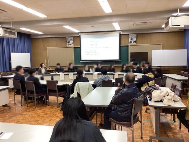 各先輩方から、志望動機や今後の展望、受験に向けて準備してきたこと、心構えなど多くの情報を1、2年生に伝達していました。何人かの先輩は、早く準備すること、計画的に進めることなど熱く語られていましたが、どのワードが響いたかな?