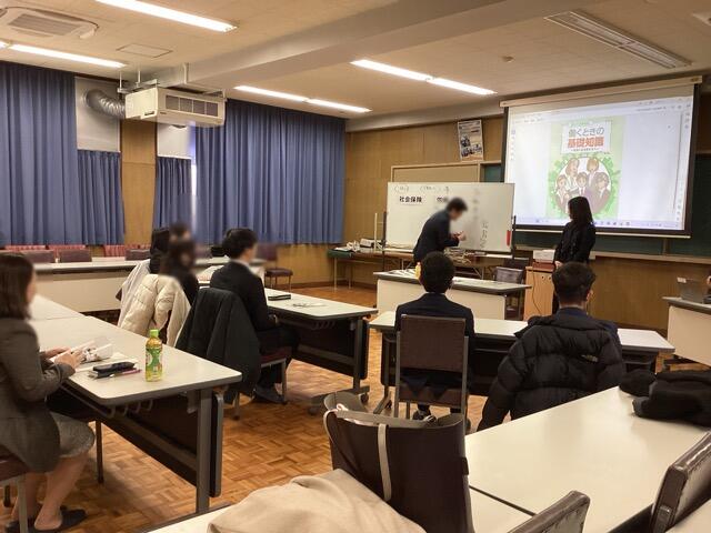 社労士の方々に来校していただき、保険の基礎知識について学習しました。給料から保険料や税金等沢山引かれていることは知っておかないと、生活できないですよね。控除や年金等も忘れないでください!
