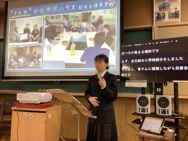 はじめに防災ボランティアに参加した代表として、3名の(本1、2年生)生徒が、委員の皆さまに報告してくれました。緊張したかと思いますが、しっかり伝わったかと思います。質疑応答も立派に回答してくれました。