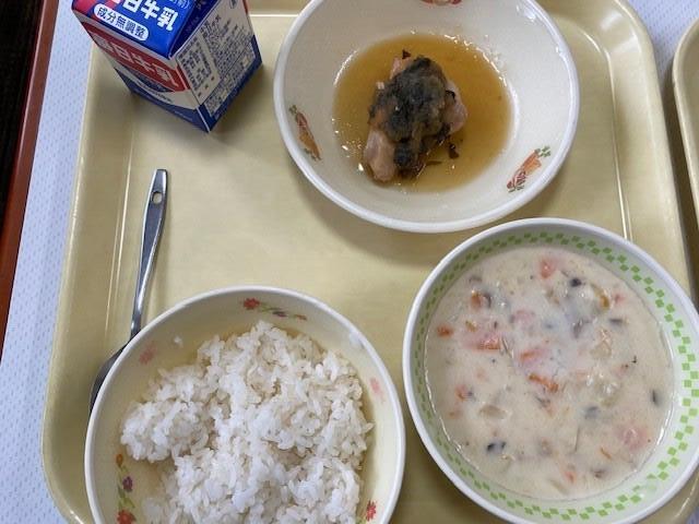 今日の給食のご紹介です。 今日は 中学部の生徒が考えた献立 でした。メニューはこちら! ご飯 オニオントマトポークソテー コーンスープ添え 添え野菜 アシドミルク 今回のアピールポイントは...「大好きな、美味しいコーンスープ!」甘くて口当たりもなめらかでおいしかったですよ。 さらに、今日は 全校放送でクイズも伝えてくれました。みんなにしっかり答えられたかな~! 給食クイズ! 問題:コ...