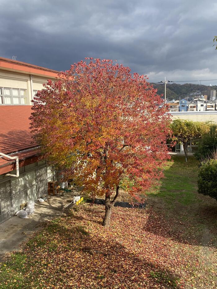 職員室の窓から見える楓が、今とてもきれいに紅葉しています。 鮮やかな赤や黄色に染まった葉が、冬の訪れを告げる冷たい空気の中で一層映えています。 この楓は、小学部2年生・6年生の教室、中学部へ続く廊下、高等部の特別教室、そして図書室に面しており、校内のさまざまな場所から楽しむことができます。 登下校の際や授業の合間に、ふと窓の外を眺めると、自然の美しさに心が和みます。 寒さは一足飛びに冬へと進みまし...
