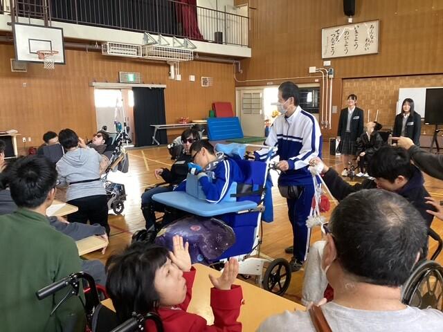 今日は、高等部1・2年生で ガチンコボッチャ大会 を行いました!視線入力や操作盤など、それぞれの生徒が自分に合った方法でボールを発射し、会場は大いに盛り上がりました。 視線入力でプレーした生徒は、画面を真剣に見つめながらタイミングを合わせ、思い切りボールを発射!また、操作盤を使う生徒は、自分で方向をしっかり調整してから発射スイッチを押し、狙い通りのコースにボールが転がると、周囲から大きな歓声があが...