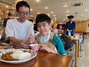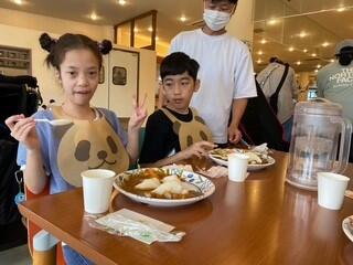 アドベンチャーワールドでの活動を終え、お昼ごはんです。6年生のみんなは、ドルフィンカレーを食べ、最後にお土産を買いました。先生と一緒に相談したり、自分の気に入ったものを買いました。