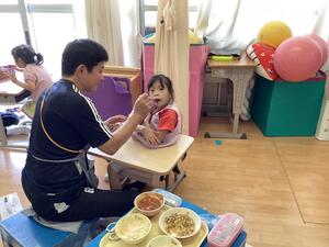 給食の様子を見に行くと、みんな「おいしい~!!」と、嬉しそうな表情でした。