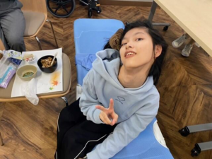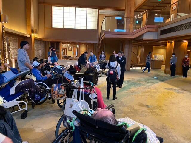腹ごしらえをして、お土産も買った生徒たちは、またバスに乗って、この二日間お世話になる宿、ホテルむさしに到着しました。