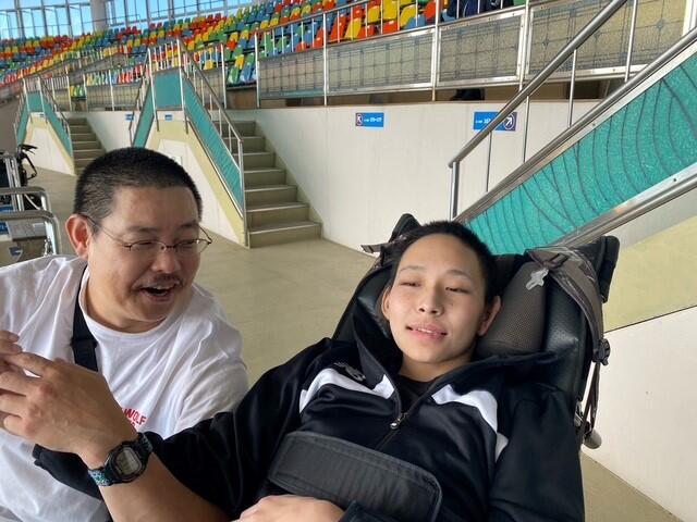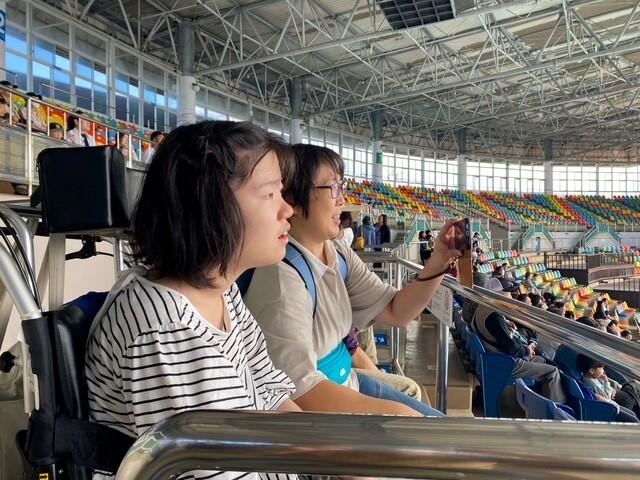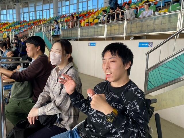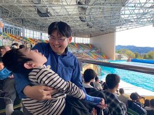 アドベンチャーワールドへは宿からバスで20分ほどで到着します。 外気は冷んやりとして、曇り空のまま。 10時の開園を前に、正面ゲートで記念撮影をしてから入場しました。 入場して暫くすると、空は晴れ渡り気温も上昇し、少し暑くなってきました。 3年生のみんなは、まず全員でビッグオーシャンでイルカのパフォーマンスを観覧しました。 トレーナーとぴったり息の合った遊泳や豪快なハイジャンプなどに見入っている生徒もいました。 跳ねる水しぶきの音、BGMやスクリーンに映し出される迫力の映像などをみんなで楽しみました。