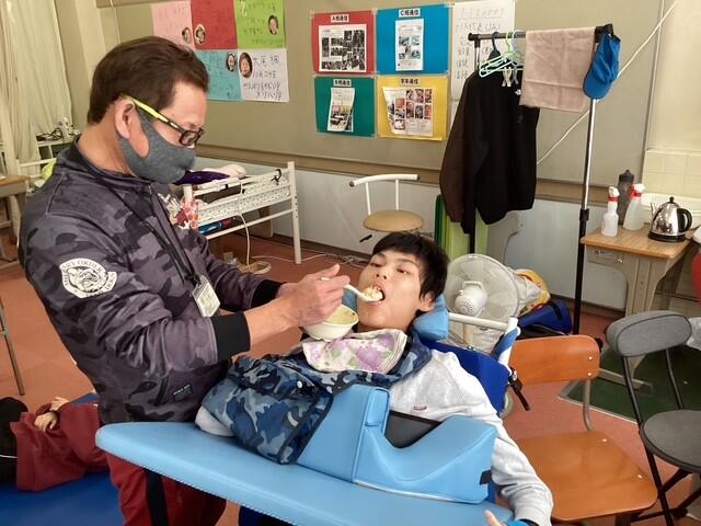 今日は高等部スペシャル給食の日でした。献立は高等部第二位の焼き鳥丼、それから白菜の味噌汁、牛乳でした。焼き鳥丼はオープンで鶏肉と白ねぎを焼いて焦げ目をつけてから、他の野菜と一緒に釜で炒めて作っています。明日は文化祭ですね。みんな楽しんで取り組んでくださいね。