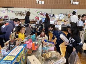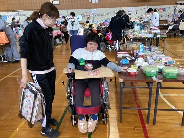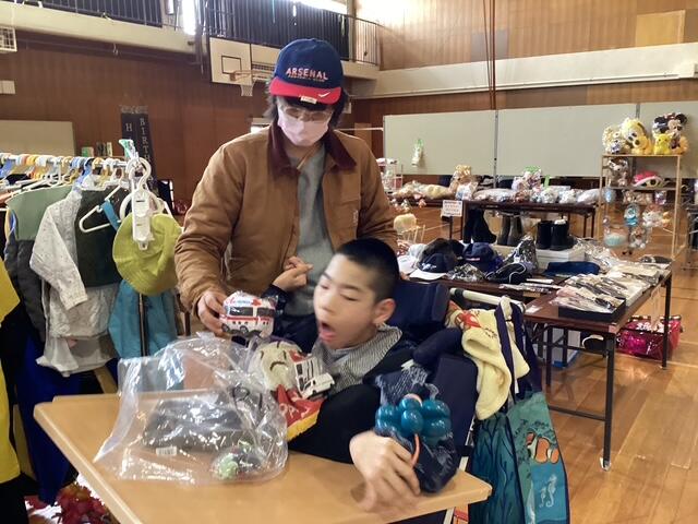 1月15日、PTA主催の「子どもバザー」が開催されました。 小学部から高等部まで、子どもたちは先生と一緒に相談したり、自分で選んだりしながら、思い思いの品物を購入しました。今年も品物の種類が豊富で、さらにバルーンアートコーナーや的あてゲームも楽しくて、会場は朝からにぎやかな雰囲気に包まれました。