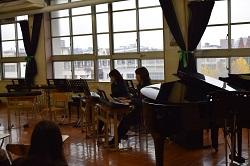12月13日(火)放課後、3年生でソルフェージュ(音楽)を選択している生徒の「クリスマスコンサート」がありました。「となりのトトロ」の10人以上での合奏や「ルパン三世」のピアノの連弾、歌もありとさまざまな種類の楽器の発表で最後まで楽しむことができました。