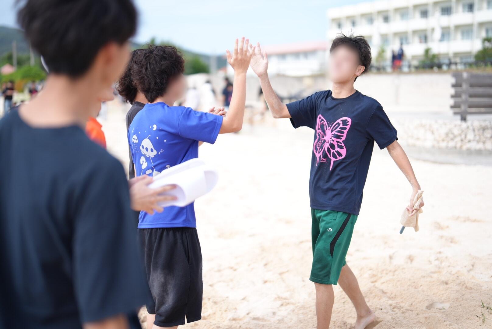 午前中は学年全体で、ホテル近くのイーフビーチという浜でビーチフラッグやビーチ相撲などを行いました!