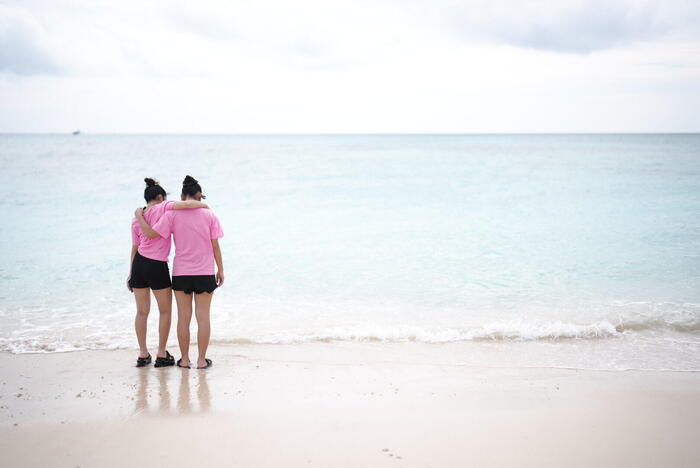 午前中は学年全体で、ホテル近くのイーフビーチという浜でビーチフラッグやビーチ相撲などを行いました! 予報では雨でしたが、青空も見えてきて沖縄に来たなぁ感を満喫できた気がします! (海がめちゃくちゃきれいでした...!!)