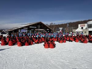 今日は上級・中級のみんなはさっそくリフトに乗って上がっていきました。