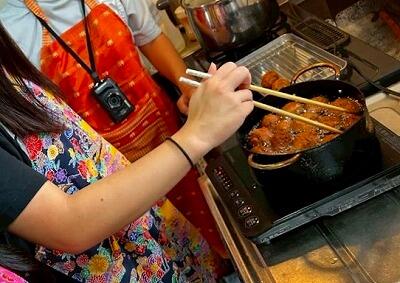 ある民家さんでは、沖縄の伝統的な揚げ菓子、サーターアンダギー作りをしてくださいました!