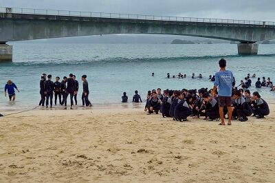 体験別プログラムは、以下の4つのプログラムに分かれて行いました。①古宇利島マリン体験(バナナボート&シュノーケリング)