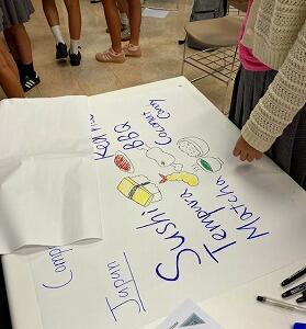 講義後は、さらにグループに分けて、講義内容をベースに各グループでテーマを決め、グアム大学の学生と一緒にプレゼンテーションを考えました。