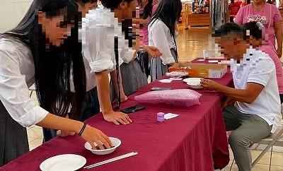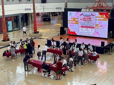 平日のお昼だったのでモールには人があまりおらず、お客さんを如何に引っ張ってきてチャリティーイベントに参加してもらうか?というところで、生徒たちは一生懸命お客さんに声かけをしていました