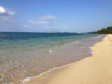 ホテルで昼食をすませたあと、午後は、ホテル前のビーチでマリン体験です。バナナボート、シュノ-ケル、ビ-チバレーにプ-ル。初めての体験もありドキドキです。水は冷たかったけれど沖縄の海を満喫しました。沖縄の海の色は場所によって、時間によって刻々と変化します。その美しさに魅了されますね。
