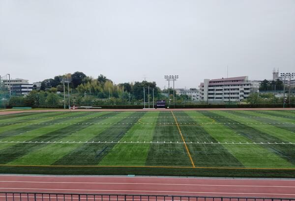 ↑ 関大のきれいな芝のグランド ↑ 関大のキャンパスを散策