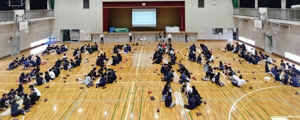 10月16日、3年生による百人一首大会が行われました。体育館いっぱいに班別に分かれ、熱い戦いが繰り広げられました。最近、映画やテレビ番組で百人一首が取り上げられることも多く、その影響もあったのか、生徒たちは大いに楽しみにしている様子でした。体育館に向かう途中から、「好きな歌は?」「〇〇の札は絶対取るねん」などの会話が聞こえてきて、みんなの顔にはワクワク感があふれていました。