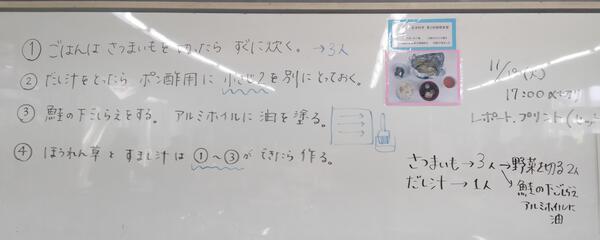 お弁当を食べた後の午後の授業でしたが、どの班も集中して作業を進めており、完成した料理はどれもおいしそう。ほくほくのご飯に、分厚く色鮮やかなサケの切り身・・・・きっと、みんなペロリと平らげたことでしょう。