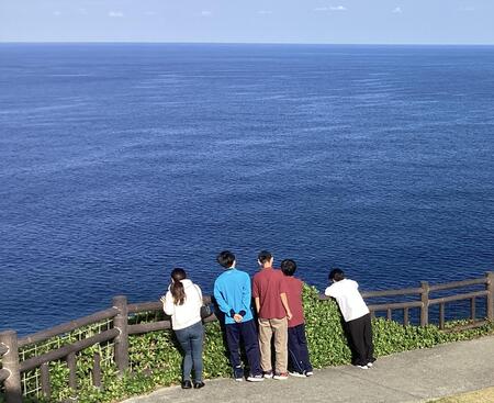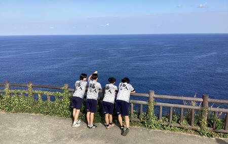 修学旅行2日目、午前中は民泊先で体験活動をしたり、島の観光をしたりして、それぞれの家族とすごしました。伊江島は本当に小さな島で、行く先々で楽しく過ごす生徒たちに出会いました。