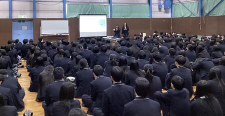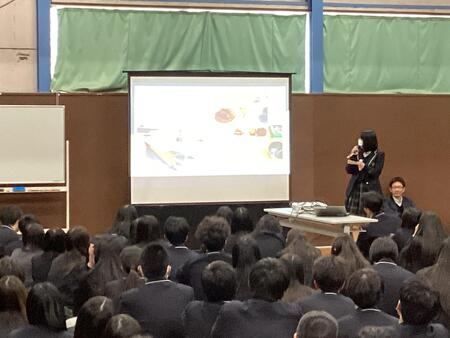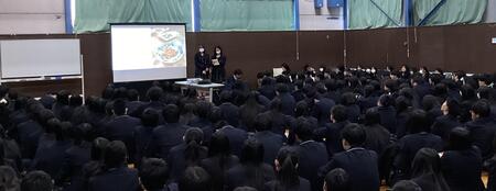 今年度実施した、台湾への姉妹校研修や韓国への語学研修に参加した生徒たちが、現地で感じたこと・学んだことなどを、自分たちの視点で発表しました。2年生は集会形式で直接発表を聞き、1年生は各教室でオンライン配信を視聴する形で実施しました。