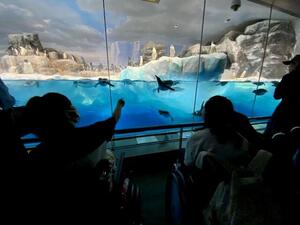 「イルカ!かわいい」「なんと言ってもベルーガ。まっしろだよ」「皇帝ペンギンはぜったいに見たい!」たくさんのペンギンに名前を付けて、友だちや先生と指さしをして楽しんでいる姿、素敵でした。