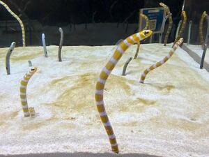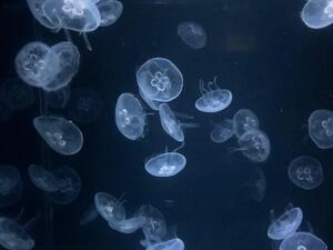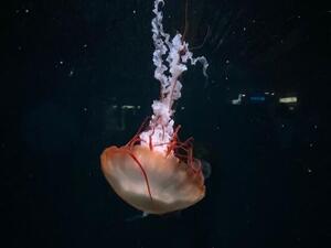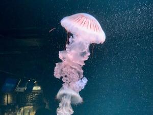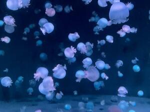 楽しみにしていた「ペンギン」コーナーでは、かわいらしいペンギンの姿に子どもたちもニッコリ。暗い通路を抜けると「クラゲ研究所」。たくさんのクラゲを見て、心癒されうっとりした表情。「このクラゲの水槽が学校にもあったらいいなぁ」という会話も飛び交っていました。