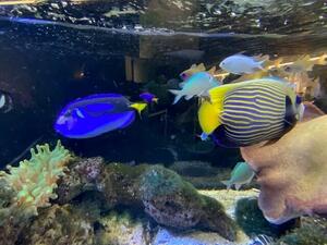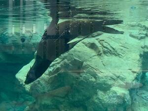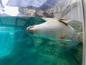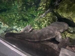 入館するとすぐに「あっ、さかながいっぱい」「見て見て!オオサンショウウオ!」「これが有名なオオサンショウウオ!」と観察スタート。アザラシやオットセイにも会いました。