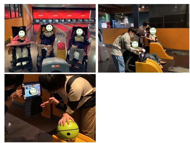 事前学習の時間にボウリングの練習をしてきましたが、ROUND1 STADIUMにはたくさんのレーンが並んでいて、ボウリングのピンが倒れる音にも迫力がありました。訪問生の友だちもオンラインで参加し、得点を競い合いながらボウリングのゲームを楽しみました。