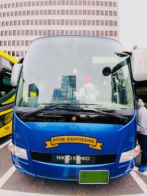 ・12時45分、「東京駅」に到着です。少し歩いて「豪華な観光バス」に乗車。