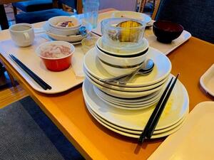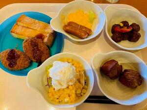 友だちと声をかけあって料理を選んだり、誘い合っておかわりに行ったり、うれしい姿がたくさん見られました。「手作りサンドウィッチ作った!」「手作りプリン、おいしすぎて4個食べた」「うどん、おいしいで。おかわりしてくるわ」満足の朝食タイムでした。