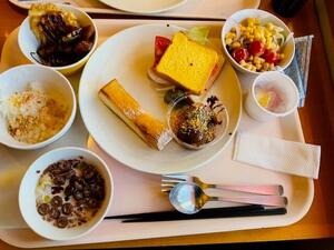 ●今朝は「ホテルの朝食ブュッフェ」で、好きなものを好きなだけ選択しておいしくいただきました。