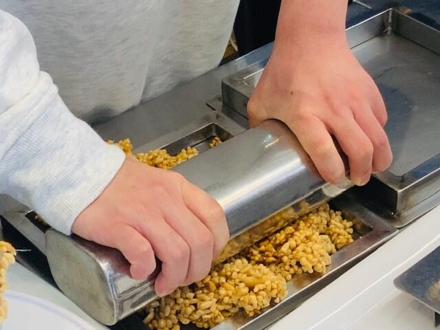 ・どの生徒も上手で、お店の方から「雷おこし職人になれますね」とほめていただきました。生徒の自信になりました。